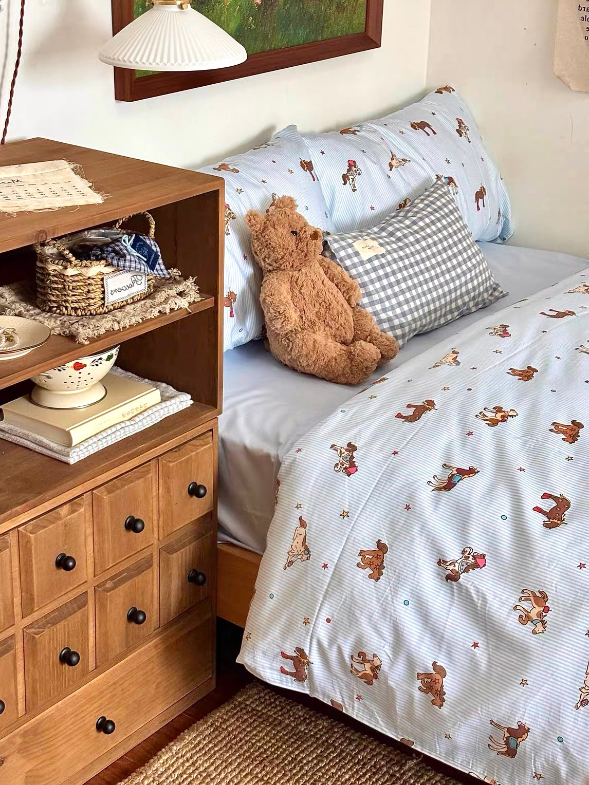 100S Blue Pony Tale Bedding Set